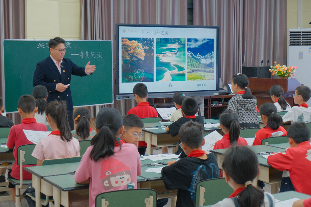 【本网讯】2025年6月20日,“思政铸魂 美育润心——民族地区AI赋能非遗美育教学暨大中小思政教育一体化区域教育资源共享研讨会”在阿坝师范学院美术学院举行。活动汇聚高校学者、基础教育名师及民族地区教育工作者。阿坝师范学院教务处处长黄成兵教授、美术学院院长黄洋教授、副院长焦凤教授、成都市实验小学、成都市罗东来名师工作室多名教师,以及来自阿坝州中小学的40多名美术教师和80多名美术学专业学生参与了本次活动,汶川县八一小学的师生为本次活动提供了大力支持和帮助。