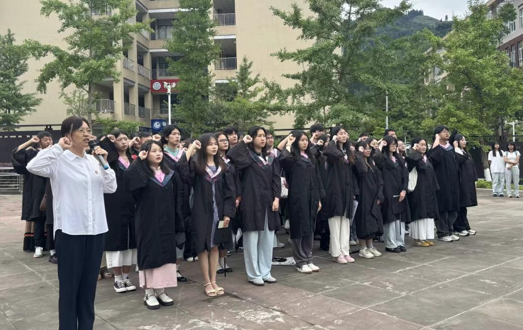 最后,全体师生抵达本次仪式的终点——园丁广场。全体毕业生整齐列队,在赵秀花老师的带领下庄严宣誓。铿锵有力的教师誓词回荡在广场上空,彰显着她们投身教育事业的坚定决心。这场宣誓不仅是对职业责任的郑重承诺,更是对“立德树人”初心的深刻诠释。毕业生们目光坚定,神情肃穆,以誓言为证,立志在未来的教育岗位上,以赤诚之心育桃李,用实际行动践行教育使命,为培养担当民族复兴大任的时代新人贡献力量。