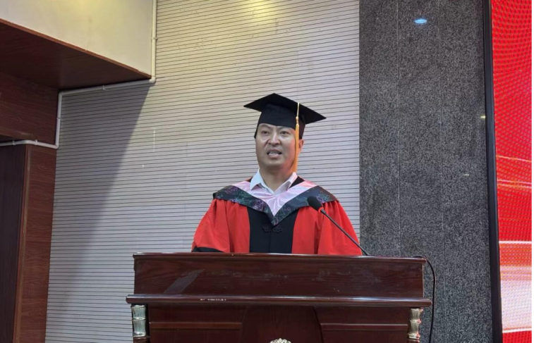 最后,学院党委副书记、主持工作副院长杨友国讲话。他回顾了学院与毕业生共同成长的历程,肯定了同学们在各个方面为学院发展注入的活力。杨院长强调学院的育人理念与精神传承,勉励毕业生积极践行社会责任,在职业发展中主动担当,勇挑时代重担。最后,杨院长欢迎大家以校友身份持续关注学院建设,期待大家未来与学院携手共进,共同书写新的辉煌篇章。
