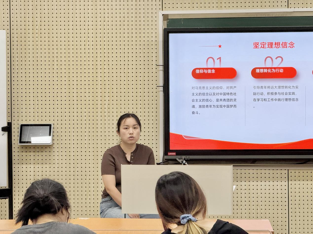 会上,刘超老师围绕 “坚定理想信念” 主题展开宣讲,深入阐释对马克思主义的信仰、对共产主义和中国特色社会主义的信念及意义,引导团员将理想转化为实际行动,在学习与工作中践行理念。讲解过程中,老师结合红色精神案例,以生动故事传递信仰力量,激励团员传承红色基因。