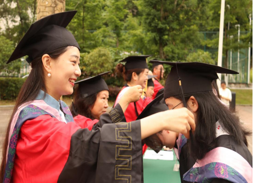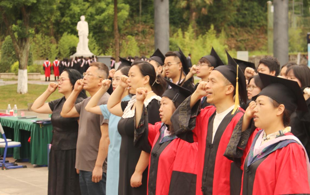 随后,学位授位仪式庄严举行。毕业生们身着学士服,依次上台接受拨穗和授位,并郑重宣誓:“恪守学术道德,传承人文精神,为社会发展贡献青春力量。”台下掌声雷动,定格下这一荣耀时刻。