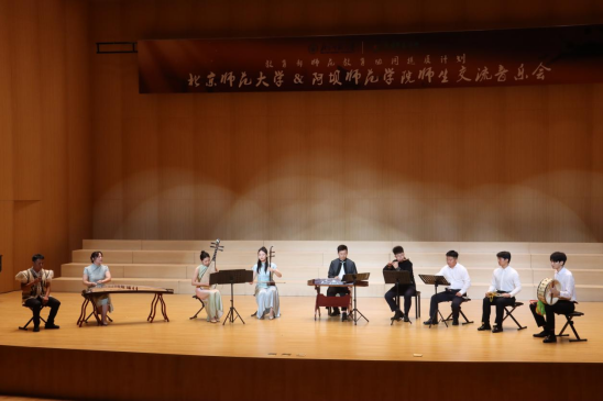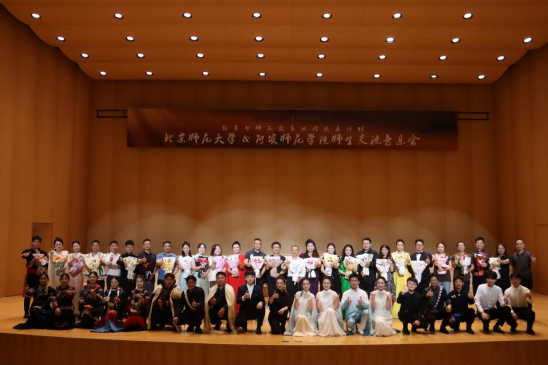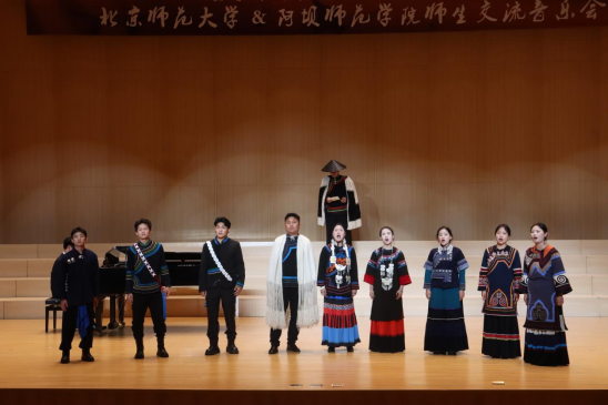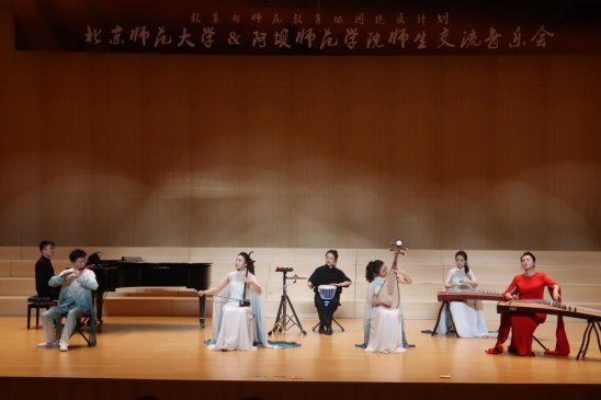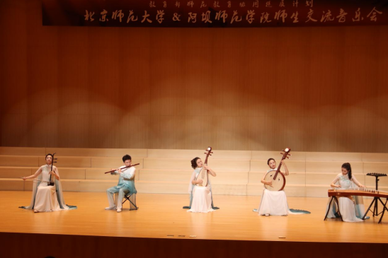7月3日晚,北京师范大学、阜阳师范大学、阿坝师范学院三所高校联袂举办了此次协同提质计划的师生交流音乐会。晚会包含古典钢琴曲独奏、中国钢琴曲独奏、声乐独唱、声乐表演唱、民族器乐协奏、民族器乐合奏,以及最后一首由全体演员共同合唱的《我和我的祖国》。现场作品表演形式丰富、艺术水准高、掌声连连,将本次协同提质活动推上了高潮,画上了圆满的句号。