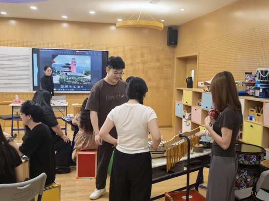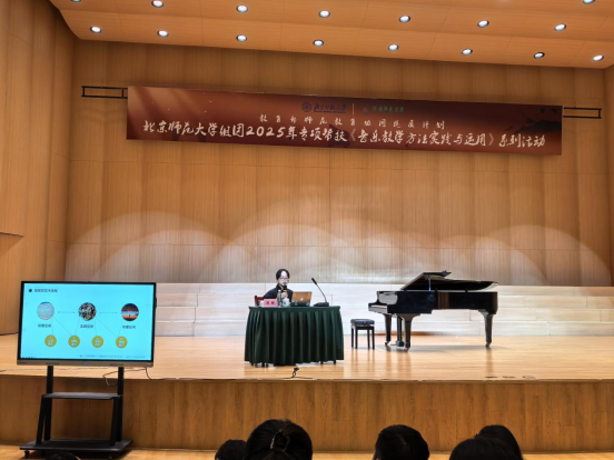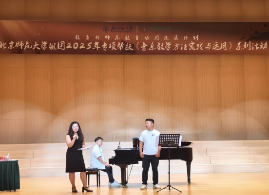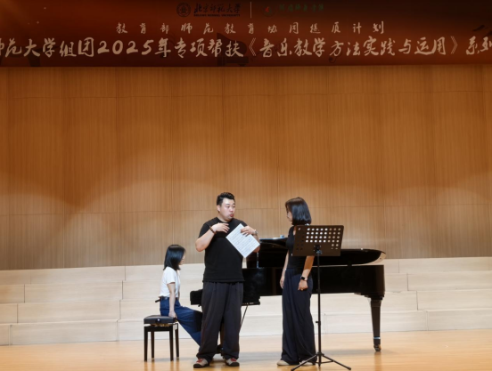 活动期间,五场高规格专家讲座轮番登场,汇聚了声乐、钢琴、合唱指挥、音乐教法等多个专业方向。首先,北京师范大学王晨老师以《戏曲元素在中国钢琴音乐中的转译》为题,通过解析经典中国钢琴作品,揭示传统戏曲韵律与现代钢琴技法的融合密码;张艺耀老师带来的《声乐演唱技术中的平衡与对立》声乐专家课,以“声音的情感叙事”为核心,通过一对一指导提升学生演唱表现力;苏小博老师《认知理论在声乐教学中的应用》专题讲座,也以独特的气息训练方式,让同学们直观感受了声乐呼吸与共鸣的关系;肖艳老师以学生实践体验为手段带来了《音乐教育教学设计工作坊》专题讲座,让音乐学专业的学生体会了音乐创编与中小学音乐课堂的乐趣;最后苏昕老师的《合唱排练中的音乐教学策略》讲座,则以合唱排练为切入点,分享了多声部训练的创新方法,为中小学音乐教师提供了实操指南。每场精彩的讲座让参培师生在叹服专家们非凡的综合素养同时,对自己的专业成长有了更多的思考和启迪。