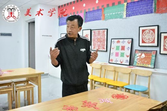 当日上午,理县藏羌剪纸非遗传承人韩龙康老师与实践团展开了一场关于非遗传承与美育教育的访谈活动。韩龙康老师与美术学院志愿者们亲切交流,提出开展非遗课程不仅是对这门手艺的传承,更是让孩子们对文化符号背后的中华民族传统文化进行更深一步的了解,同学们感悟颇深,对非遗剪纸文化有了更深入的理解。
