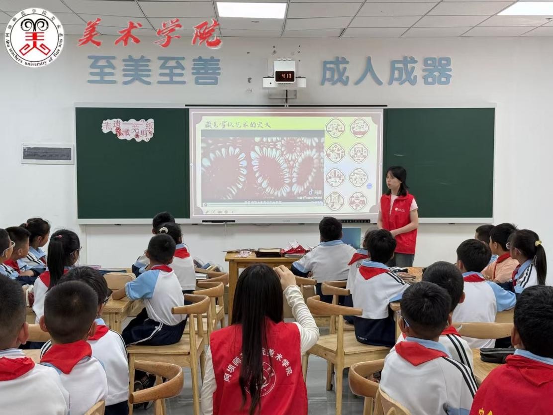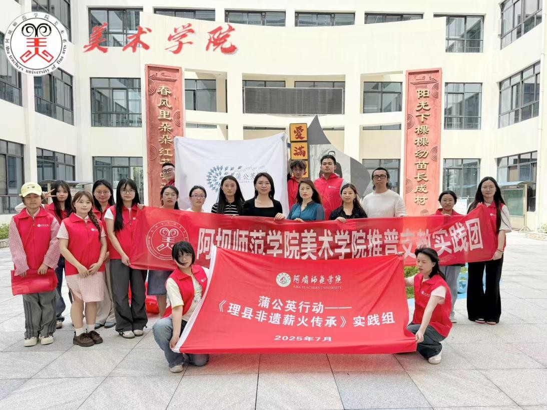 本网讯:2025年7月1日9∶00,美术学院蒲公英行动——《理县非遗薪火传承》推普实践团前往理县杂谷脑营盘小学开展非遗课程教学与推普实践活动,此次实践由美术学院党委书记马小勇、团委书记周琳琳带队,美术学院15名志愿者共同参与。