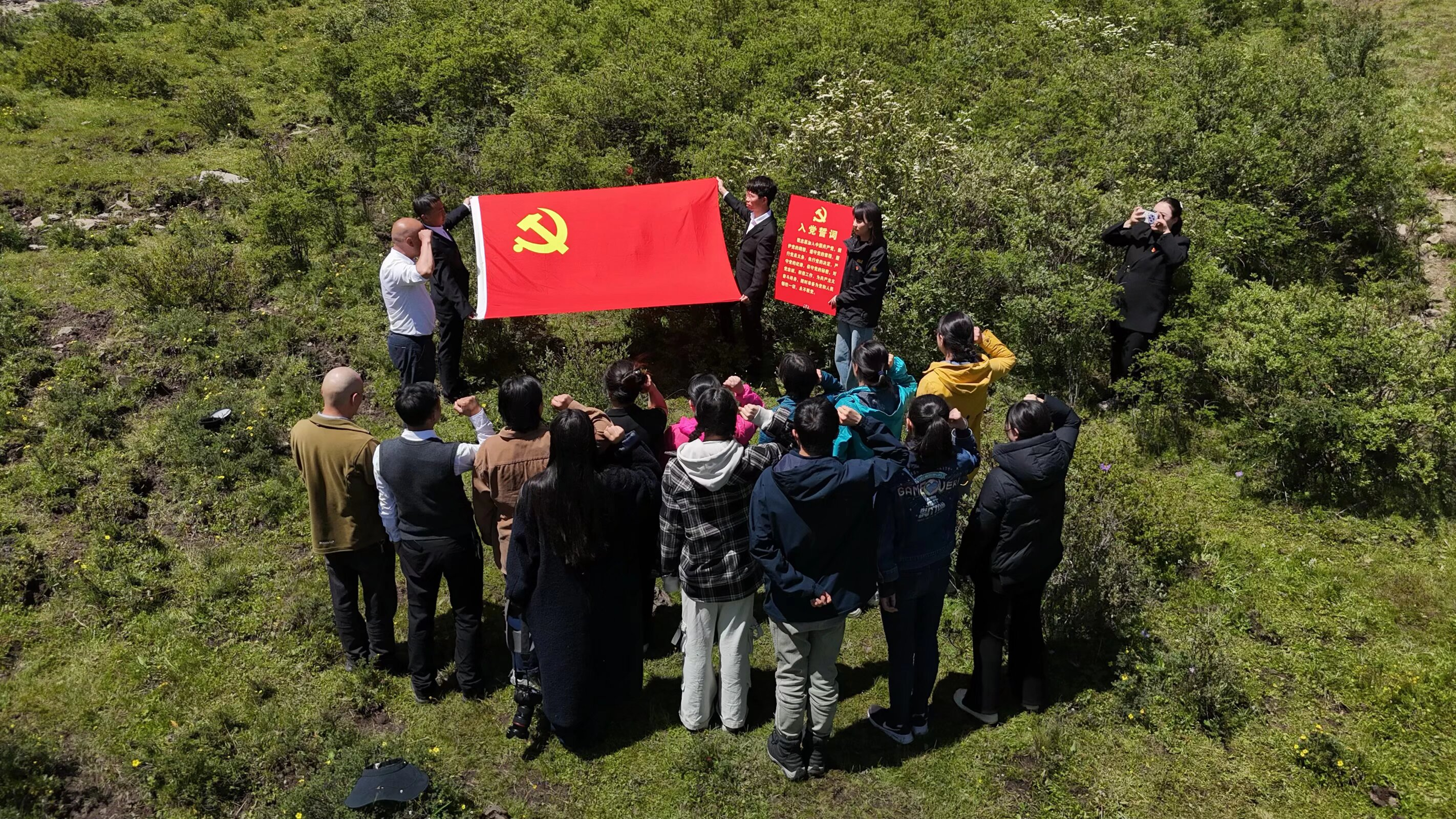 科研团队抵达红原县安曲镇下哈拉玛村,这里是红军长征途中重要的补给与休整地。1935年,红军左路军经此进驻阿坝,与当地藏族群众结下深厚情谊。在这里,科研团队进行了庄严的重温入党誓词仪式。