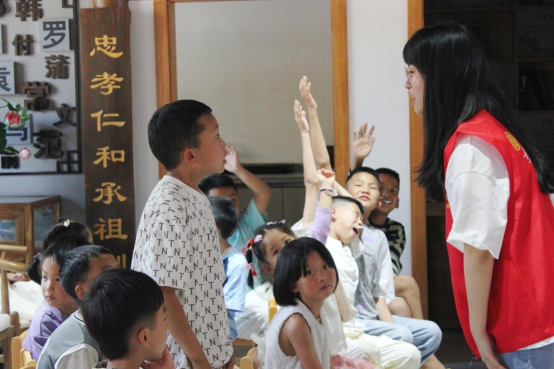 7月13日,实践队成员以“彝海结盟与民族团结”“奢香夫人”“三千孤儿入内蒙”为主题开展红色文化理论课程,并带着学生朗诵《中华颂》。课堂上,成员以多媒体设备、图文、视频、手工教具等多种形式向学生讲授红色故事。在讲述“彝海结盟”故事时,设置角色扮演环节,让学生们在沉浸式体验中感受革命历史中的民族团结力量,深刻理解红色故事背后的精神内涵。学生们积极投身互动活动,主动思考问题、踊跃提问作答,整个课堂氛围活泼热烈又井然有序。在知识的浸润与实践的体验中,孩子们对文化的认知愈发深刻,情感联结也更为密切。