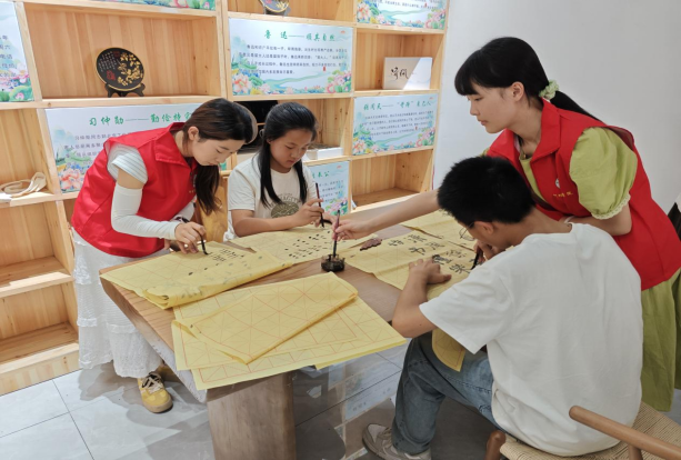 7月12日,民族文化课程继续延伸,“彝族传统的房屋建筑”“藏羌剪纸:民族记忆与交融之美”“书法体验课”等主题理论课程依次开展,并深入沟通交流进行实践调研。同时,实践队成员还带领学生开展了剪纸、书法等传统文化实践活动,通过耐心示范与细致指导,让学生在亲手操作中感受传统文化的独特韵味与魅力。