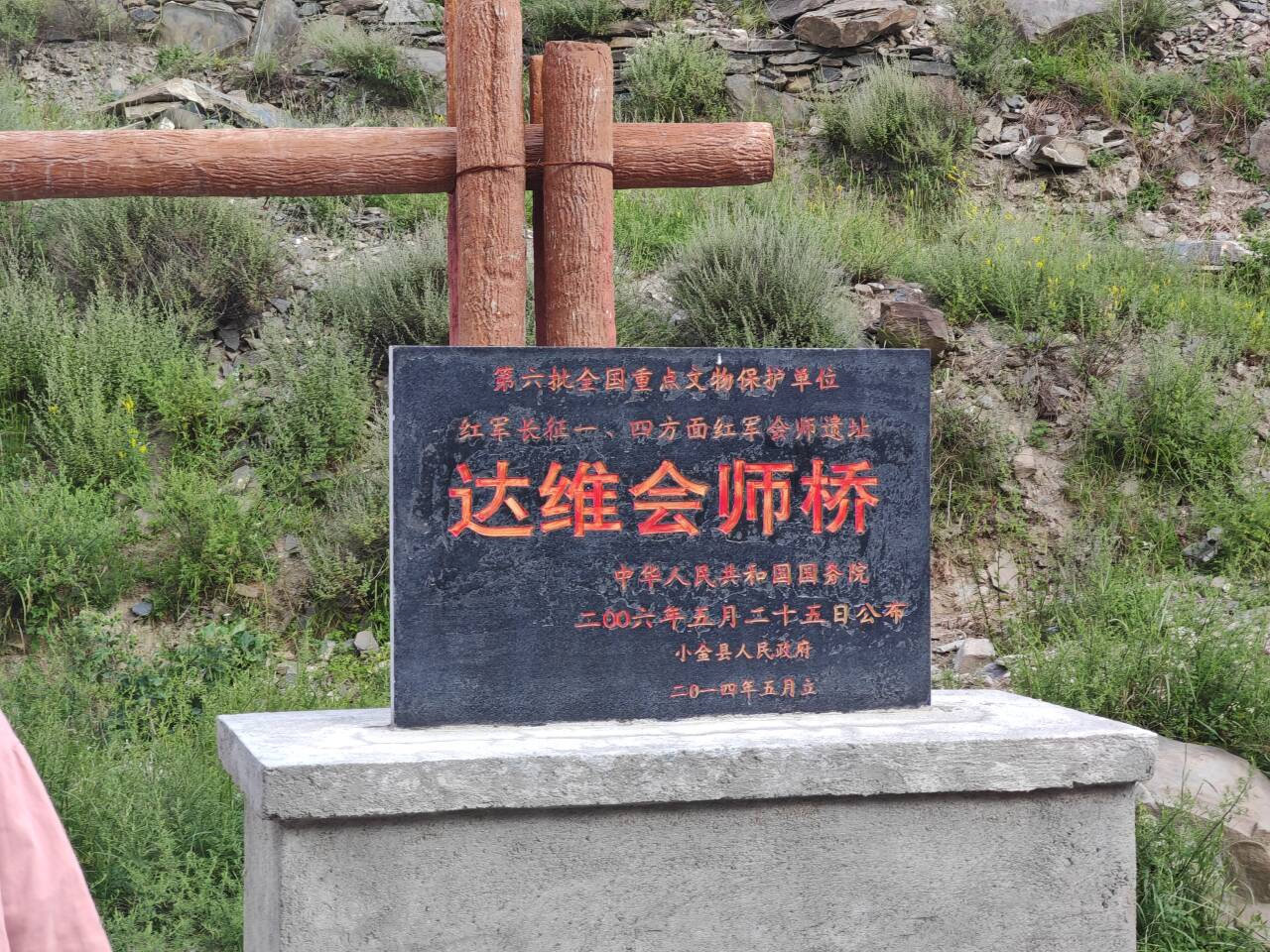 午后阳光渐烈,团队来到达维会师纪念碑前。碑体正面“达维会师纪念碑”七个大字在阳光下熠熠生辉,浮雕里,两位红军将领骑在马上,身姿挺拔、神情坚毅,身旁的文字与场景呼应,仿佛能让人看到当年两支红军部队跨越艰难、胜利会师,于征途绝境汇聚希望的震撼瞬间。