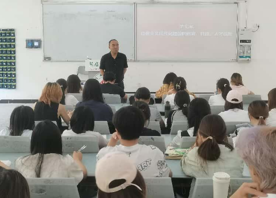 2025年6月12日,副校长齐泽民教授在C102教室为2023级统计专业学生授课,聚焦第七章“社会主义现代化建设的教育、科技、人才战略”。课程系统分析了国家教育强国、科技兴国、人才强国战略的深远布局,帮助学生深刻了解自身专业在国家现代化建设全局中的定位,明确了新时代青年学子的使命与担当,为学生的未来奋斗指明了方向。
