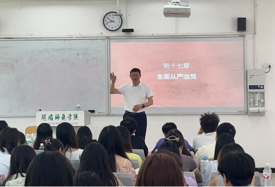 2025年6月12日,学校党委副书记、校长向武教授面向2023级数学教育专业学生,以第十七章“全面从严治党”为主题讲授专题思政课。向武校长通过“历史纵深-国际视野-校园实践”三个维度的精辟阐释,回溯党的建设历程,对比中外治理经验,联系校园清风正气,深刻论证了全面从严治党的极端重要性,强化了学生对坚持党的全面领导,听党话、跟党走的深切共鸣与坚定信念。