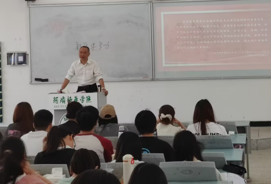 2025年6月10日,副校长尕让他在树人楼C103教室,为同学们重点讲解了习近平新时代中国特色社会主义思想的世界观和方法论——“六个坚持”。课程结合大学生学习、生活及思想实际,深入浅出地阐述了“六个坚持”的深刻内涵与实践要求,强调了用这一科学思想武装头脑对于青年学子成长成才的重大意义,引导学生掌握认识世界、改造世界的强大思想武器。