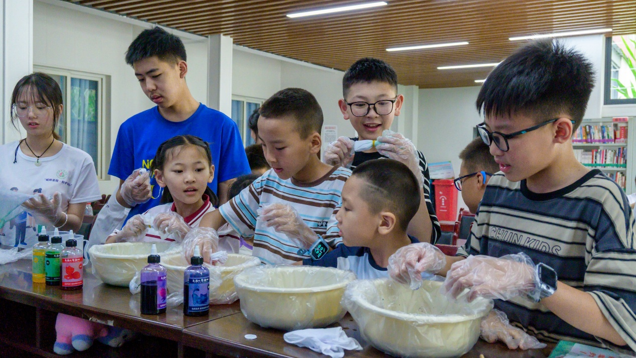 科学实验课堂则点燃孩子们的好奇心。经过6种安全配方测试后选定的肥皂水实验,让孩子们直观认识表面张力的奥秘。醋泡鸡蛋实验中,10岁的舒紫馨观察到鸡蛋在白醋中产生气泡时,兴奋地喊道:“我制造出了二氧化碳!”这种沉浸式的科学体验,让抽象的知识变得生动可感。