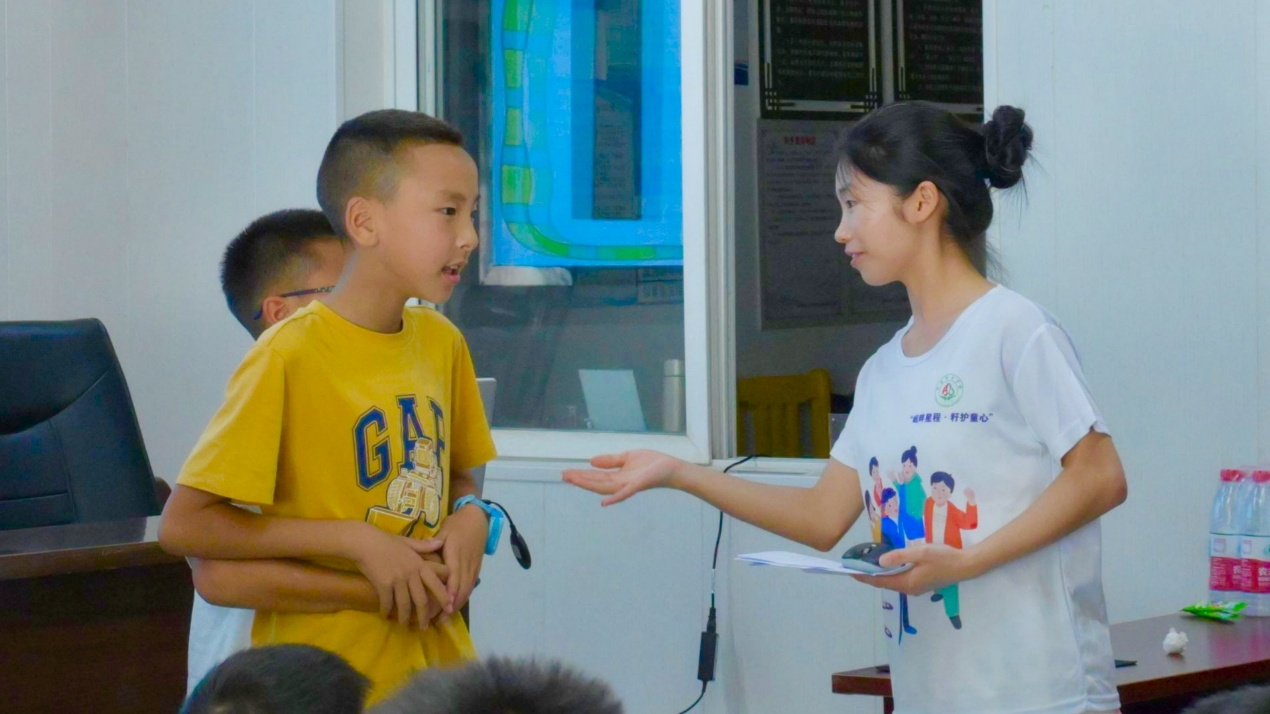 7月10日,“岷畔星程·籽护童心”暑期科普教育班正式开课。在安全教育课堂上,实践队创新采用“情景模拟+互动体验”的教学模式。地震逃生演练环节,孩子们在志愿者们的指导下熟练掌握“伏地、遮挡、手抓牢”的避险口诀;消防演习中,灭火器的正确使用方法通过实物演示变得直观易懂。特别值得一提的是,团队将专业急救知识转化为儿童易学易懂的形式,通过动画演示和情景模拟教授海姆立克急救法。23名儿童在课堂上掌握了“弯腰、握拳、冲击”的基本动作要领,其中2位小朋友主动上台演示,在志愿者老师的指导下纠正动作细节。
