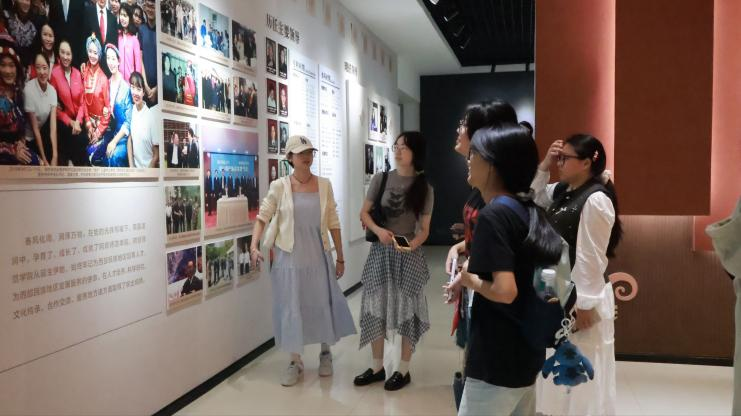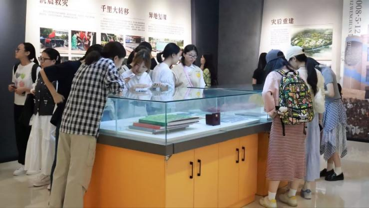 在漆宇老师的生动讲述和引领下,同学们依次参观了“历史沿革”“办学成就”“校友风采”三大主题展区。通过珍贵的实物陈列、历史影像和文献资料,她系统介绍了学校自创立以来的发展历程与辉煌成就,着重讲述了办学特色和历代师生砥砺奋进的感人故事。他强调,“自强不息、追求卓越”的学校精神是每一位学子应当传承的宝贵财富,并鼓励新生立足新时代、勇担新使命。