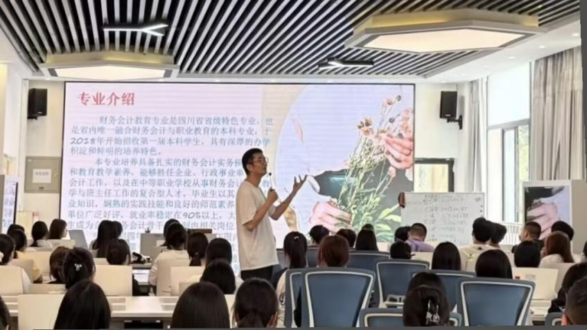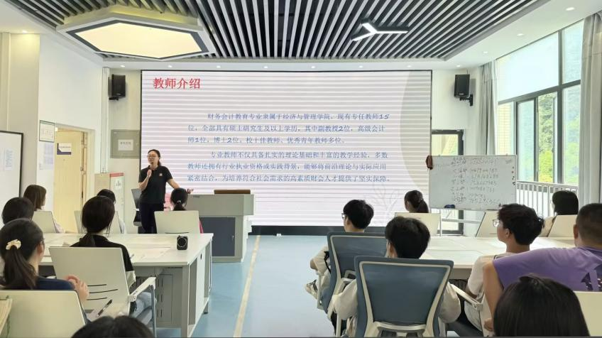 活动中,谢抒宏聚焦财会会计教育专业,从课程体系与核心能力要求切入,深入解读专业特色,结合财会行业数字化转型趋势,系统梳理企业财务、金融风控等发展方向,清晰描绘从基层会计到财务总监的职业发展路径,同时详细介绍了考研择校、专业报考及职业资格证书等升学与发展要点,帮助财务会计教育专业新生建立起对未来学习的整体认知。