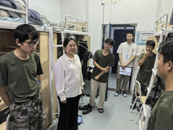 随后,学院重点关注了新生对寝室新装智能门锁的使用反馈,为后续学院后勤部门的调整和更改做出贡献,并为新生近日学习情况提出建议,了解新生军训感受,询问军训感想。