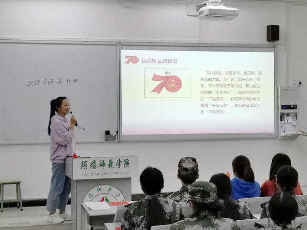 (教院讯)为庆祝中华人民共和国成立七十周年,大力弘扬以爱国主义为核心的民族精神,进一步加强学生的思想道德教育,9月18日至22日,教师教育学院2019级各班组织开展了“国庆献礼,感恩爱国”为主题的班会活动。