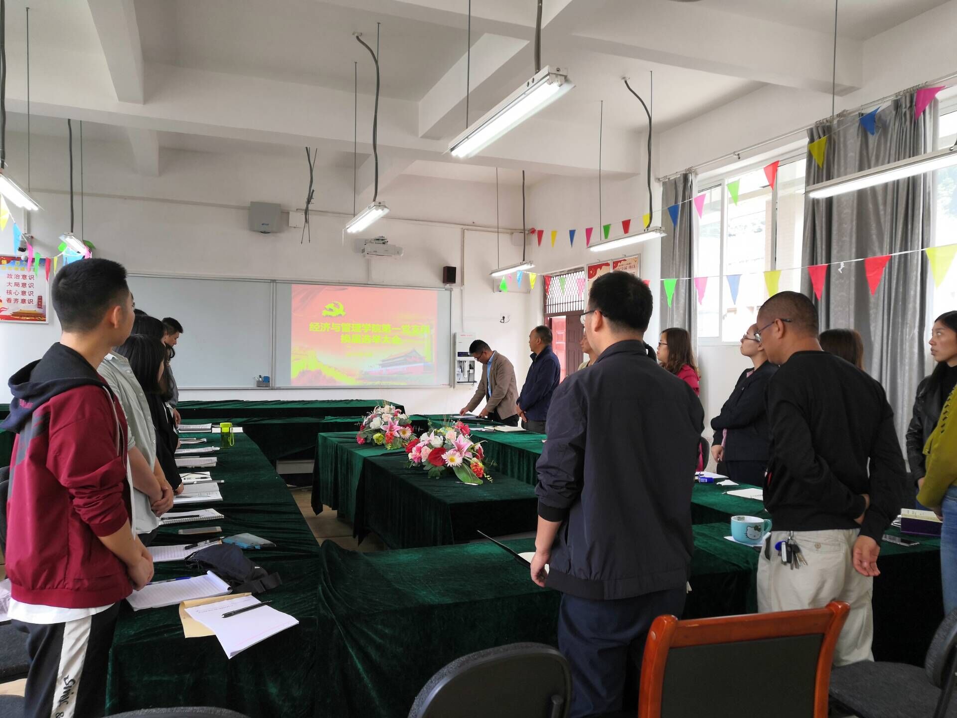 【本网讯】按照学校党委的部署,不折不扣、扎扎实实推进主题教育工作,经济与管理学院党总支按照《学院“不忘初心、牢记使命”主题教育实施方案》的安排,围绕学校立德树人根本任务,制定我院主题教育实施方案,根据党总支统一安排,9月25日下午,在学院会议室开展系列专题主题教育活动,全院老师及学生党员参加会议。