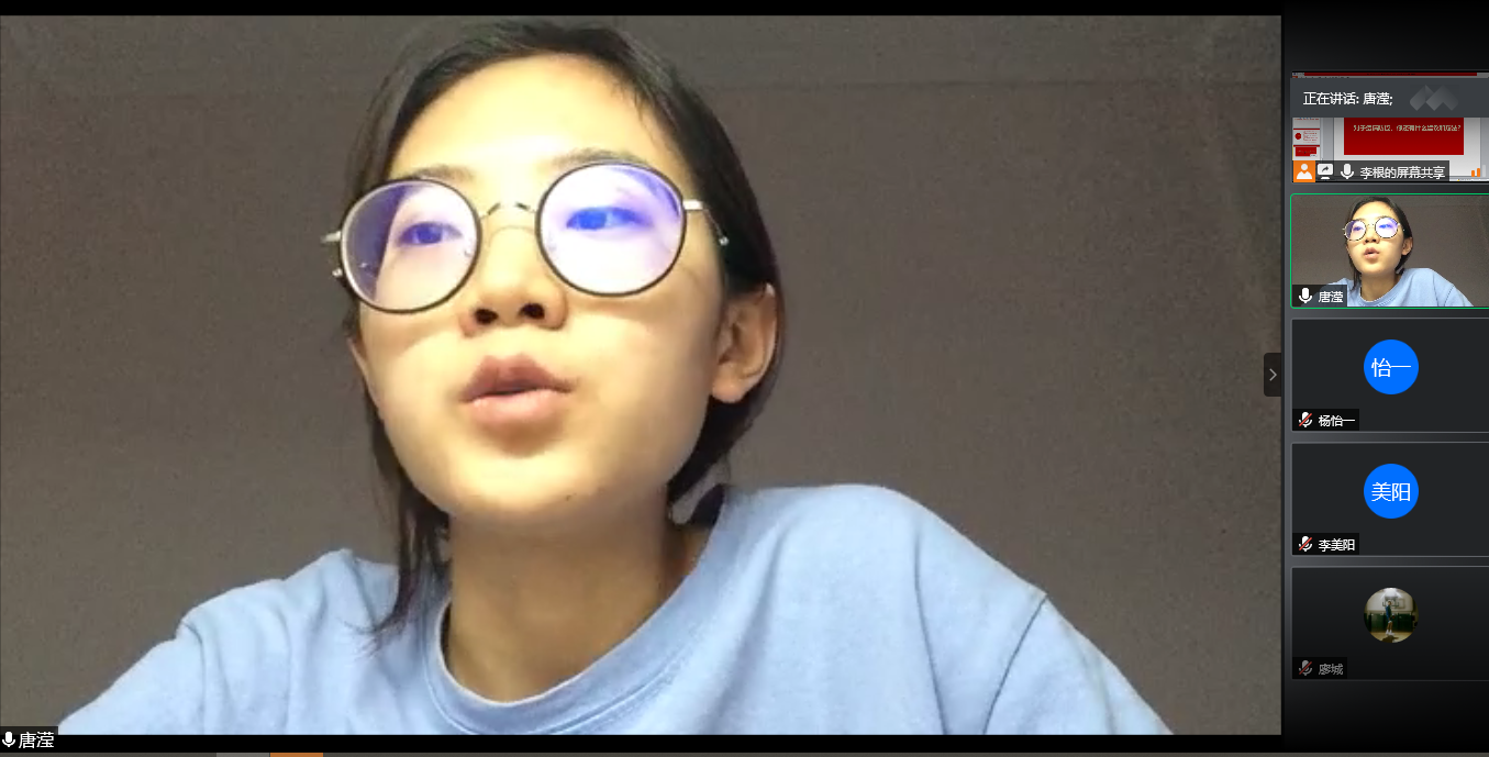 之后在了解疫情期间涌现的英雄事例时,许多成员纷纷表示,奋斗在一线的医护人员、建设工人、志愿者们用自己的行动证明了中国青年人的责任与担当,作为新时代的我们更应奋发图强建功新时代,努力成为有理想,有本领,有担当的社会主义合格建设者和可靠接班人。会议最后,李根同学也向大家分享了返校复学后疫情防控的常识和个人卫生小建议,让大家在掌握疫情防控防护常识和技能的同时,能以更饱满的情绪投入到接下来的学习和生活。