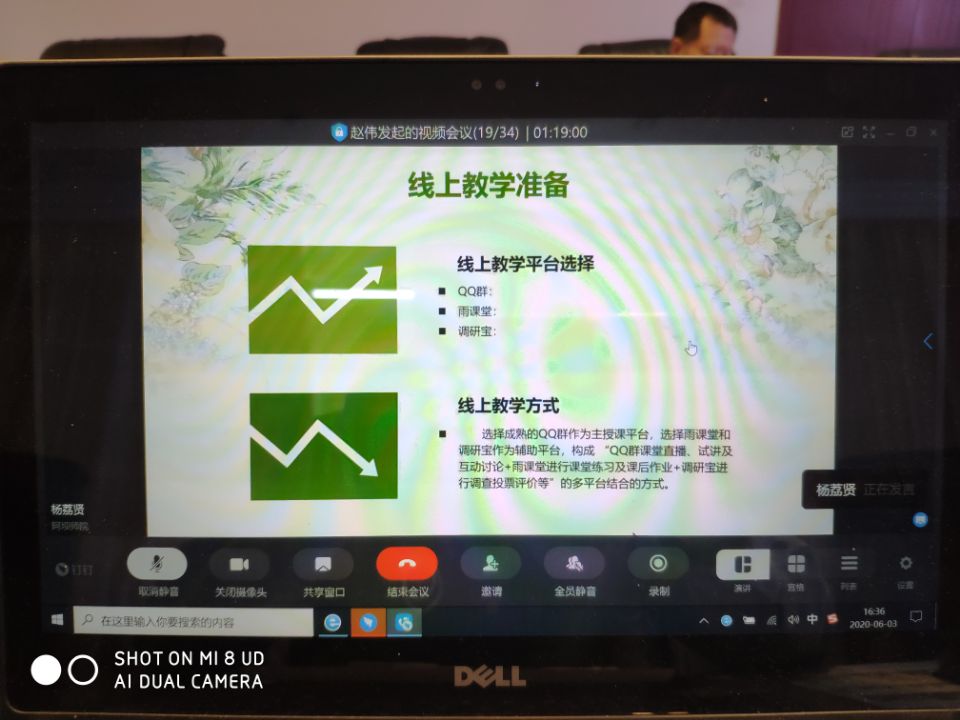 在教学研讨会上,各位与会老师进行专题报告和主题发言两类研讨。吴莉作了《基于疫情期间学情分析的高等数学在线课程教学尝试》的专题报告,杨仕椿老师作了《线上线下相融合的提升学生科研创新能力的初等数论课程教学探索》的专题报告,赵伟老师作了《2020年线上教学课程的几点体会》的专题报告,蒲可莉老师作了《浅谈数学专业课程在线教学中存在的问题——以<数学分析>为例》的专题报告,杨荔贤老师作了《线上教学的实践与经验——以<中学数学教材研究>为例》的专题报告,董彪老师作了《<高等数学选讲>的几点思考》的专题报告,夏冰老师作了《网课的三点启示》的专题报告。同时,在主题发言中,各位老师对线上教学与线下教学相结合的专业理论课教学方式、教学心得、教学成效、存在的问题和建议进行了探讨与交流。