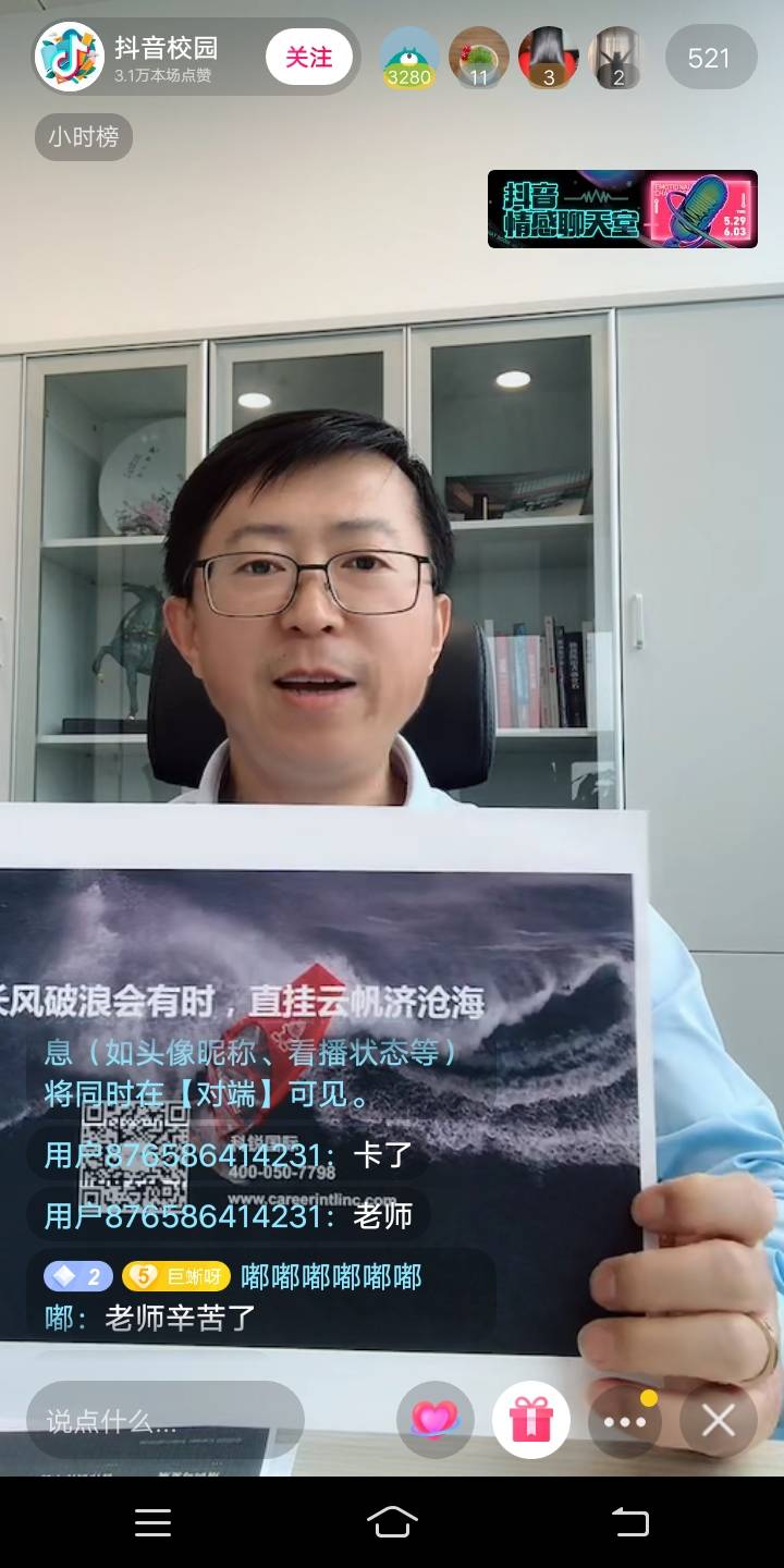 【本网讯】为了更好地利用网络资源进行就业指导教育,提升毕业就业求职技能。2020年6月3日下午四点,我院组织2020届毕业生打开抖音APP,准时收看国家人力资源和社会保障部全国人才流动中心通过“抖音校园”直播号举办的就业指导直播课程。
