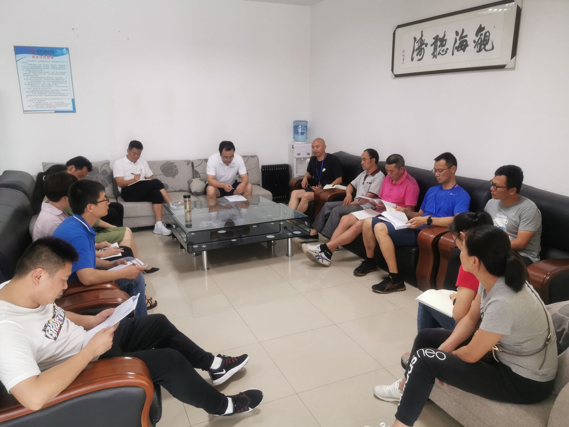 首先由院长龙正印讲解本次“专升本”工作要求:一、各位监考老师要坚持公平、公正、公开的原则,切实做好各项工作;二、各位评委老师要守时守责,遵守考试的各项规章制度;三、考务会议后,各测试小组需再次核查场地、器材与相关考试工作是否配套齐全,若发现问题,应及时上报和处理。然后由牟剋蓉老师讲解具体工作安排。最后由党总支书陈松强调“专升本”工作的重要性与严肃性,提醒各位评委老师务必严肃、认真对待,确保专项测试工作取得圆满胜利。