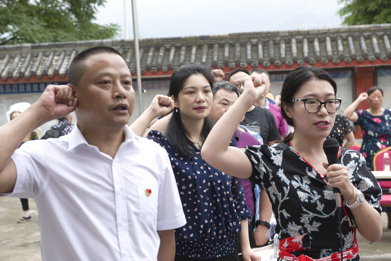 庆祝大会上,绵绵细雨仿佛是在为党员同志们洗礼,所有与会人员在领誓人的带领下重温了入党誓词,回顾了建党99年来的艰辛与成绩。