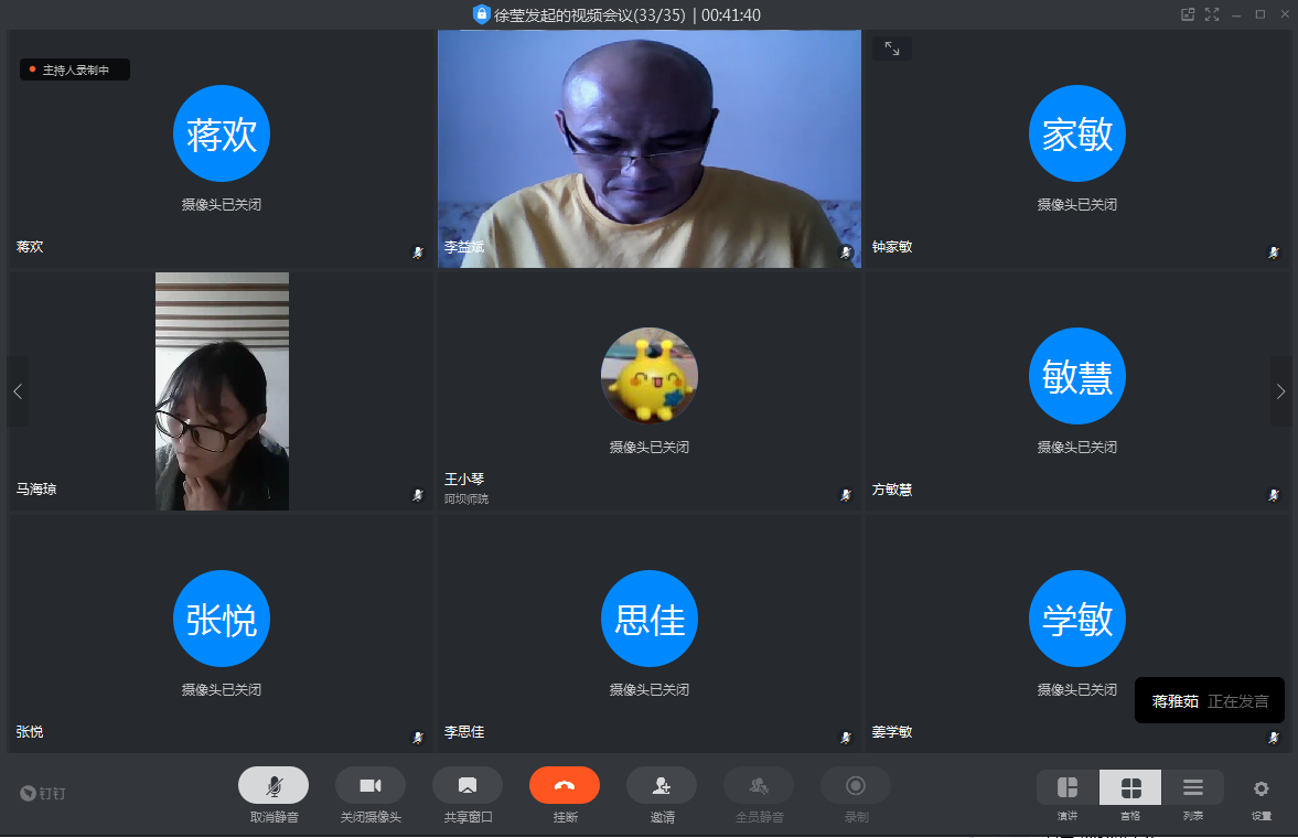 参加网络视频启“云答辩”的有2017级旅游管理与服务教育专业全体学生、班主任李益斌老师、教研室主任谭志蓉老师和学院副院长李清茂教师,及全体答辩组老师。本次答辩共分三个答辩小组,答辩时间从上午8:30开始,一直持续到晚上22:00结束。
