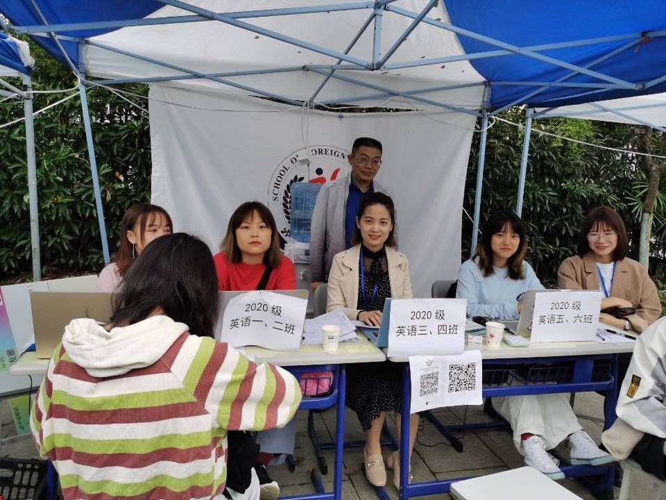 【本网讯】 金秋九月,丹桂飘香,在学校的统一部署和安排下,外国语学院积极有序地开展了2020级新生迎新工作。本次迎新工作是由外国语学院党总支书记宋明、院长刘远志、副院长张茂军牵头,全体班主任老师配合,团委学生会协助,秉承“热情、周到、高效、平安”的工作原则,让新生更多地了解学院、认同学院、热爱学院,为其更好的融入大学生活打下坚实的基础。
