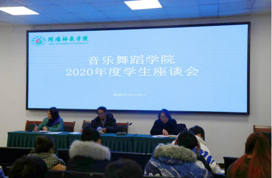 本网讯:2020年12月3日星期四上午10点,我院在音乐舞蹈学院502会议室召开了2020年度学生座谈会,学校教学督导唐世德老师、学院党总支副书记孙荣、副院长张刚、副院长付莉、学管办公室主任张筱青、音乐学教研室主任袁文杰、音乐表演教研室主任张新昊、每个班学生代表26人共同参加本次座谈会,会议由学院副院长张刚主持。