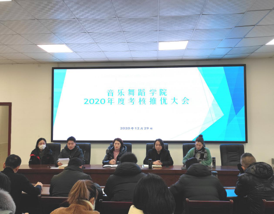 【本网讯】:2020年12月29日,在音乐舞蹈学院会议室开展了2020年度考核推优大会。本次会议由我院党总支副书记孙荣主持,学校组织部干部科科长李家发同志和我院全体教职工参加本次会议。本次会议分为学院科处级干部的年度考核民主测评和学院教师的年度推优考核两部分。
