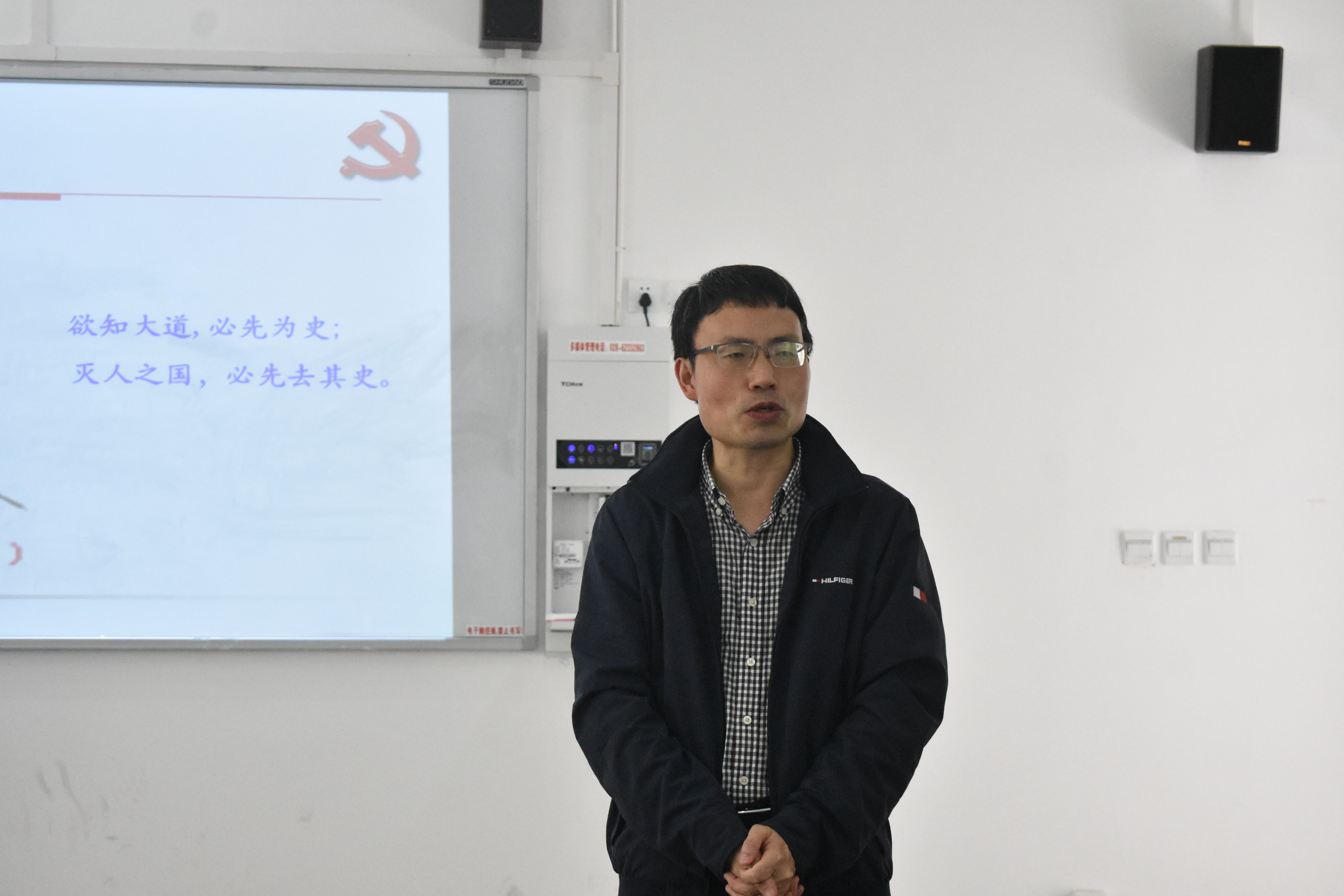 会议伊始,杨院长展示了我国从建国以来的毛主席到现在的习主席。为我们讲述当时峥嵘岁月,长路漫漫,这一段路走得极为坎坷。在这之后,杨院长提到马克思主义在中国的广泛传播为我们奠定了思想基础,还讲到中国特色社会主义道路是中国必由之路。他强调,学生应多了解中国的党史,熟知党的重要思想和全国人民代表大会的主要内容等。