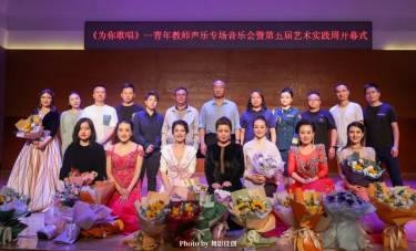 学校党委书记吴昊教授,党委副书记、工会主席孙建平同志,音乐舞蹈学院副院长张刚教授与演员们合影留念