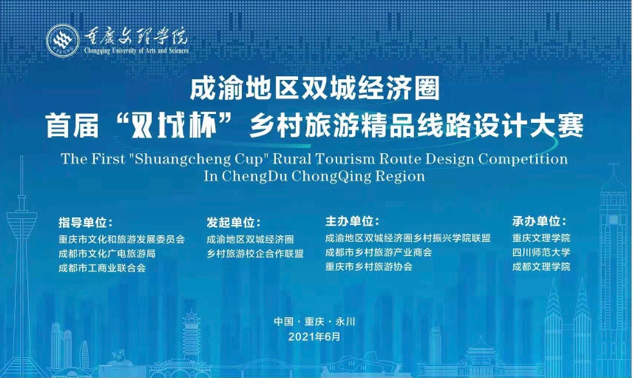 【本网讯】2021年6月5日,成渝地区双城经济圈首届“双城杯”乡村旅游精品线路设计大赛比赛由成渝地区双城经济圈乡村旅游校企合作联盟发起,重庆市文化和旅游发展委员会、成都市文化广电旅游局、成都市工商业联合会指导,成渝地区双城经济圈乡村振兴学院联盟、成都市乡村旅游产业商会、重庆市乡村旅游协会联合主办,重庆文理学院、四川师范大学、成都文理学院联合承办。大赛收到成渝地区以及来自全国各地的参赛作品100余件,经预赛、初赛,最终来自重庆、四川、江苏地区的共计23支队伍入围决赛。