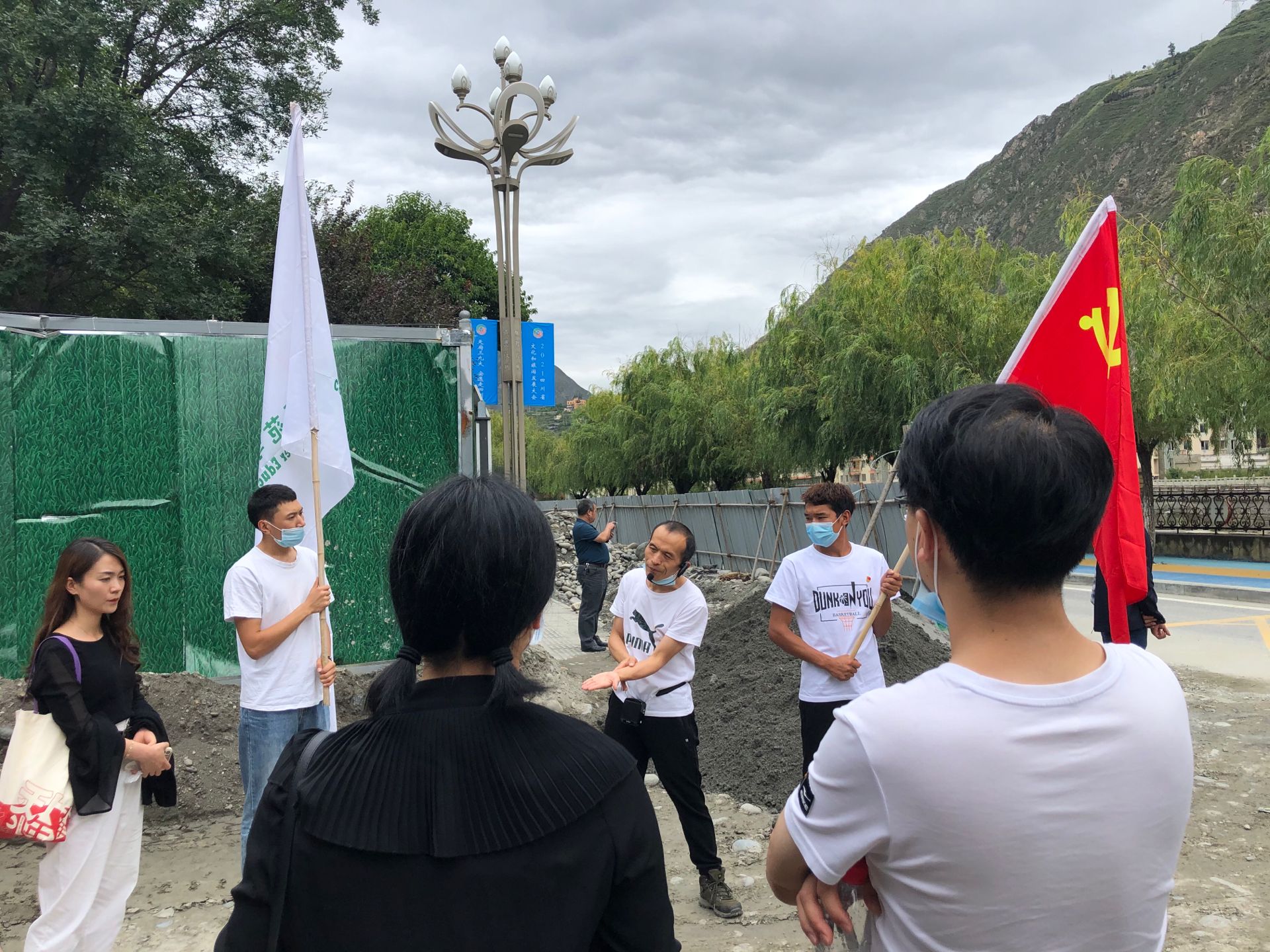 地震中被留存下来的小桥流水凉亭见证了阿师的变迁,如今成为汶川无忧公园的地标。学生党员代表来到学校遗址近前,看着周围的建筑工地,回望阿师足迹,这里就是我们独有的红色资源,我们要传承好红色基因,焕发出对党的感恩与热爱。