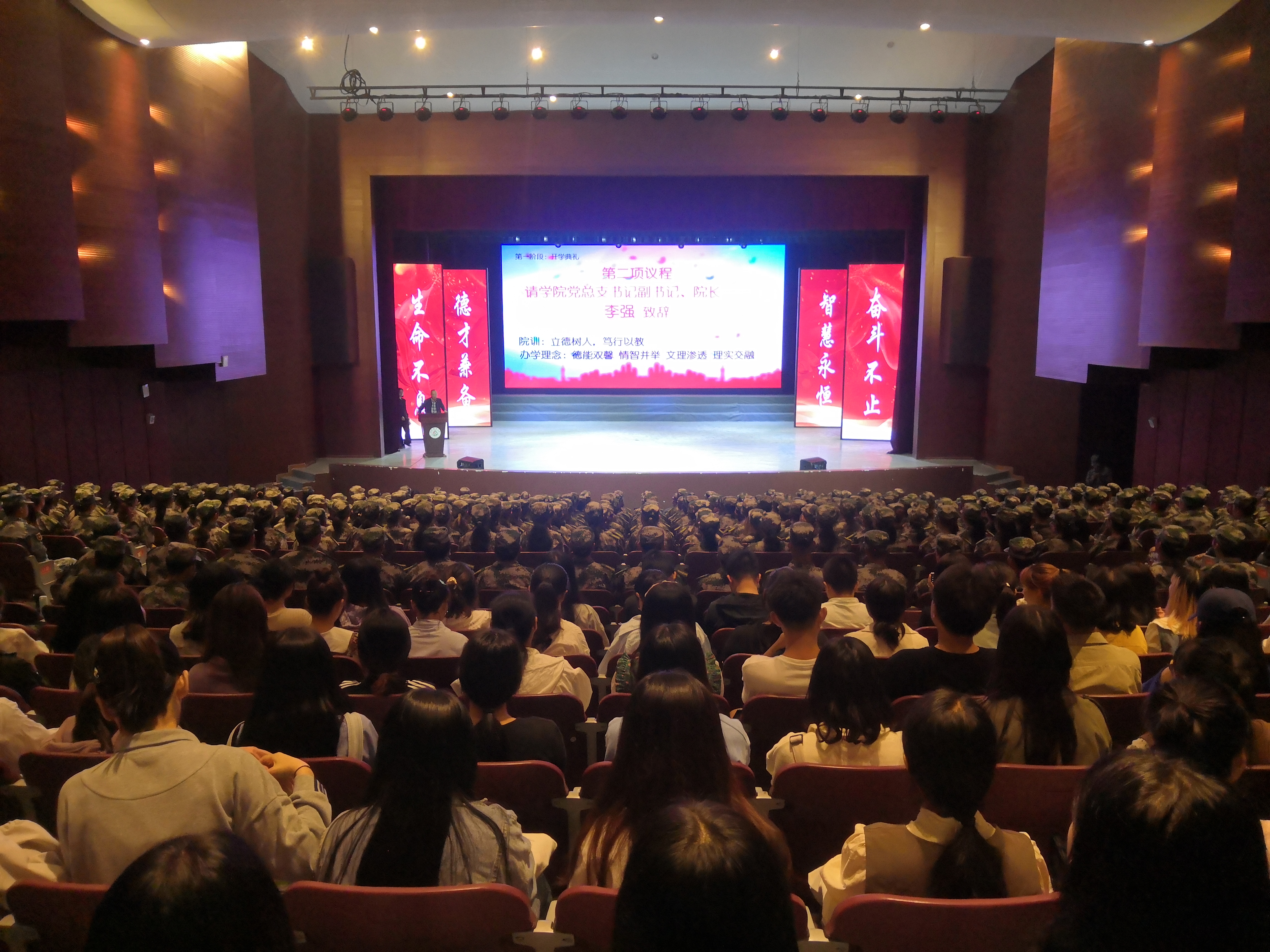 在庄严的国歌声中,会议拉开了帷幕。李强院长首先致欢迎词。他代表学院热烈欢迎新生的到来,同时对学院的学科设置、师资力量等概况进行了介绍,并寄语全体新生:“今天的步伐决定明天的风景,今天的选择决定明天的成就,今天的态度决定明天的高度!”紧接着,教师代表朱思丝发言,她对同学们提出了“把学习作为一种贯穿整个人生的生活方式”的建议。新生代表余曼发言,她表达了对即将开启的大学生活的美好憧憬,同时也号召同学们以新的风貌,开启新的学习,她说道:“人生的高度,没有终点,只有坚持学习,才会收获有高度的人生!”