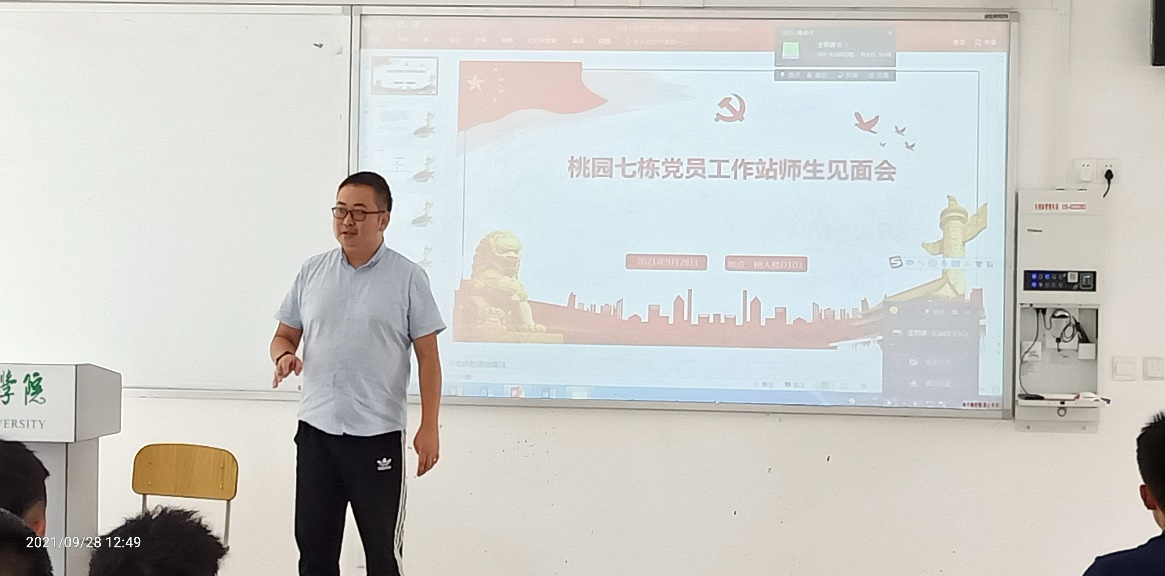 本网讯:2021年9月28日12:30,桃园七栋党员工作站于树人楼D102举行全体干事的第一次正式见面会。出席本次见面会的有党员工作站指导教师、党员工作站站长以及全体新成员。