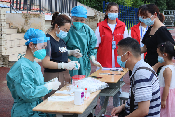 下午,向武带队深入到学生食堂、学生公寓、教职工核酸检测点等现场检查指导工作。校团委志愿者协助全体教职工进行核酸检测,自律委、民兵排、学生会协助学生有序开展核酸检测,学校全员核酸检测工作安全、高效、有序进行。