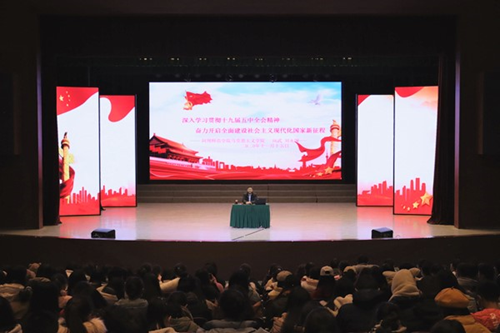 【本网讯】2020年12月12日上午,《形势与政策》系列课程之“深入学习贯彻十九届五中全会精神奋力开启全面建设社会主义现代化国家新征程”在南苑剧场开讲。我校党委副书记、校长向武担任主讲,马克思主义学院师生到场聆听。