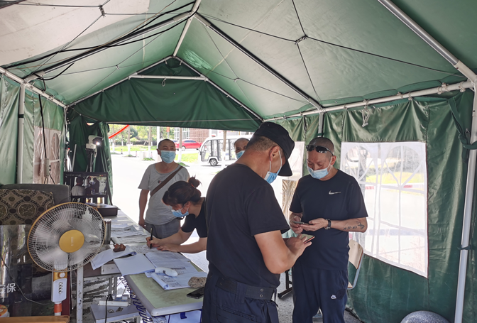 8月3日上午9点,甲任来到防控一线检查门岗执勤卡点工作情况。甲任肯定了保卫处、保安公司前期所开展的工作,并代表学校党委、行政感谢大家的辛苦付出,希望大家继续认真、负责地开展疫情防控和校园安全稳定保卫工作。目前防疫形势严峻,同志们要提高站位,高度重视,严防死守,确保校园安全,同时要做好个人防护,将口罩、消毒液等防疫物资发放到位。