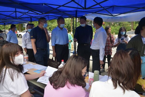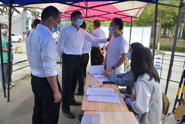 学校领导及相关职能部门、各学院负责人先后检查各学院防疫服务站点,详细了解防疫工作内容,询问学生安全返校情况。校长向武对学生安全返校工作给予了高度肯定。他表示,学生防疫返校工作高效负责,安全返校情况良好。