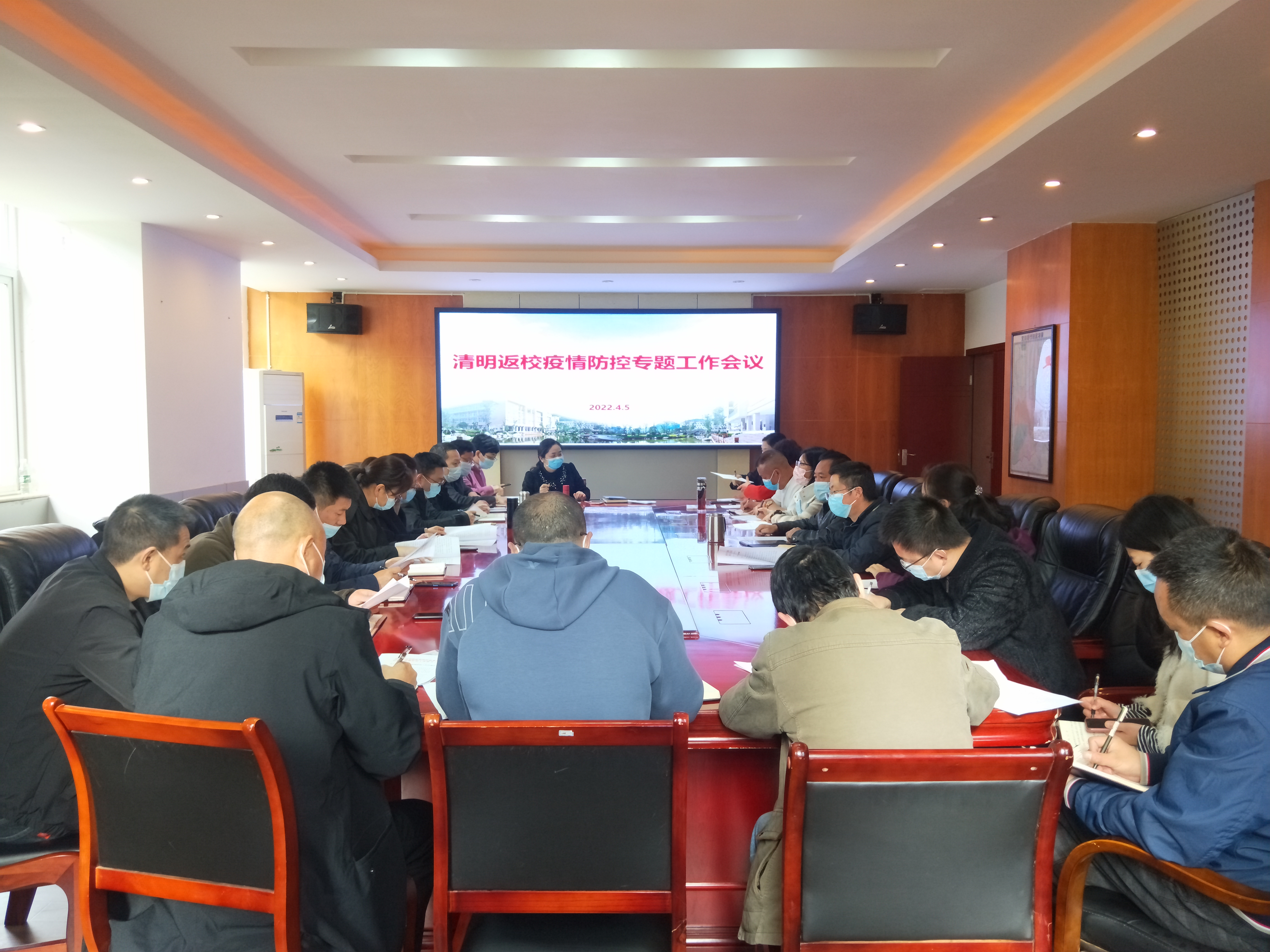 【本网讯】为持续做好我校疫情防控工作,有效控制和降低疫情传播风险,保障全校师生及各类人员的身体健康和生命安全,4月5日上午,清明返校疫情防控专题工作会议在行政楼402会议室召开。各二级学院党委(党总支)书记、党政办公室、宣传统战部、学工部、人事处、后勤基建处、保卫处、资产经营公司、教务处负责人参加了本次会议,会议由党委常委、副校长甲任主持。